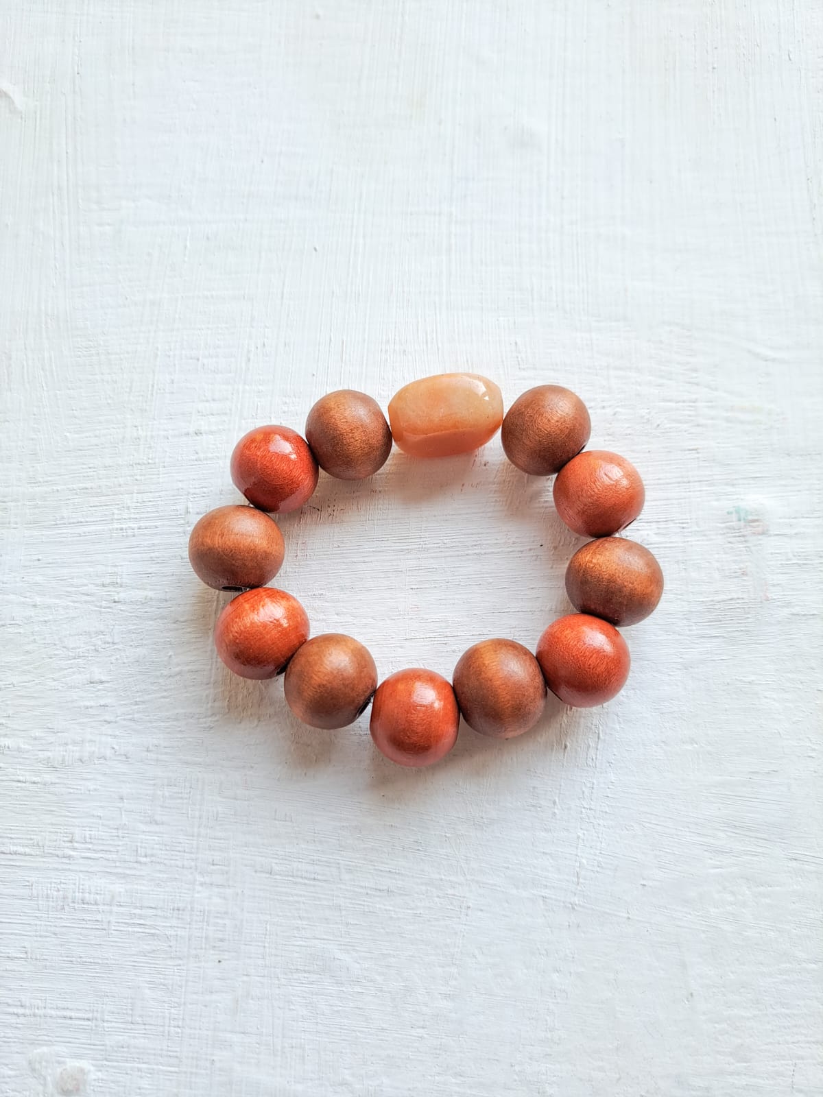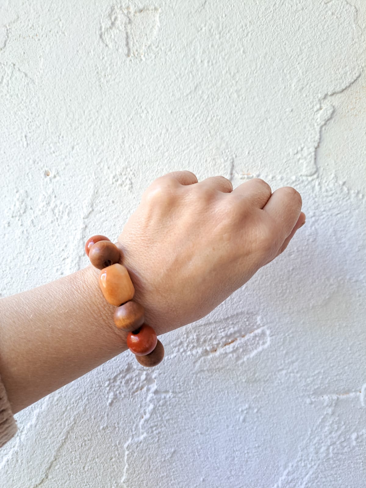 Combina las cuentas de madera con una cuenta de resina.