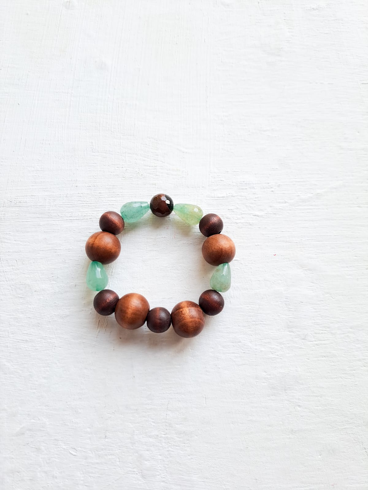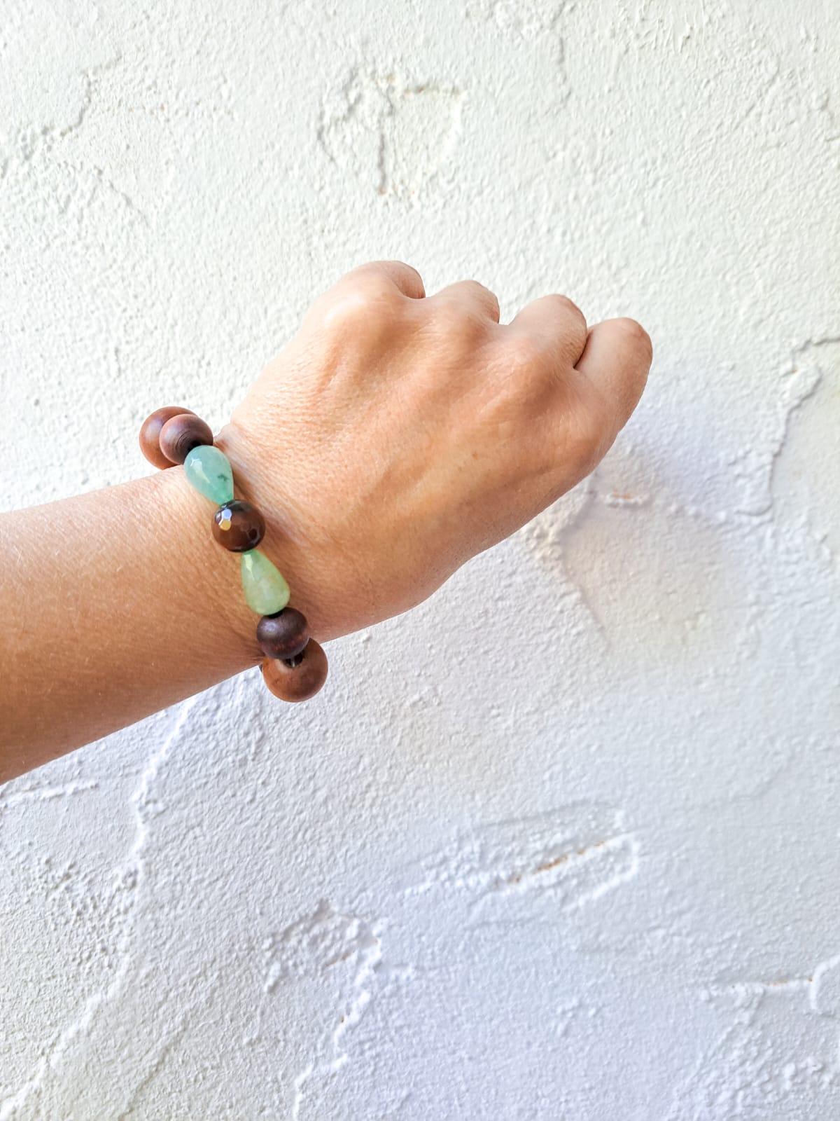 Cuentas de madera combinadas con cuentas de Ágata en marrón y azul.